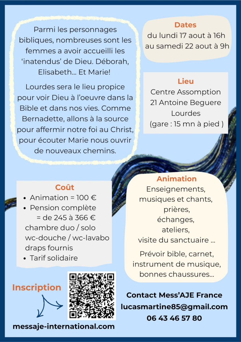 Cheminer dans la foi avec des femmes de la Bibledu lundi 17 août au samedi 22 août 2026