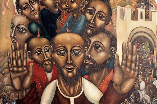 L’animation nous propose de prendre aujourd’hui notre bâton de pèlerin, de nous glisser dans cette foule et, tout en cheminant, de découvrir comment certains vivent le passage vers la Pentecôte chrétienne, célébrant le don de l’Esprit, cet Esprit que Jésus nous a remis en mourant sur la croix.